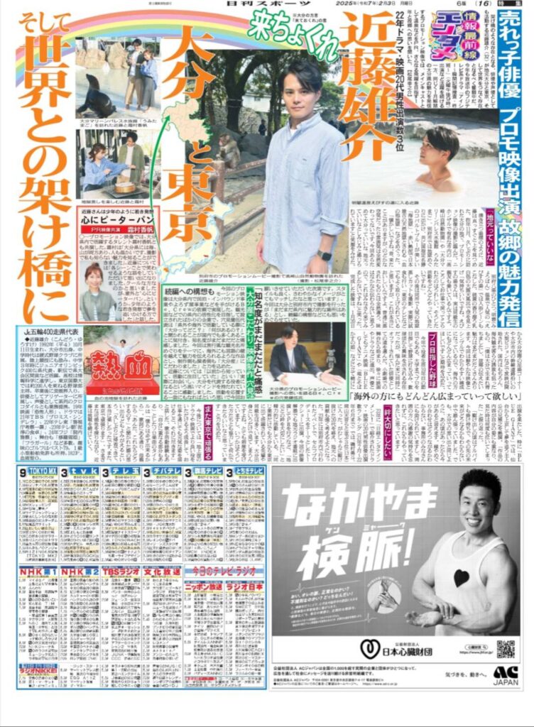 当社が制作した、大分の魅力を世界に届けるためのプロモーション映像を取り上げていただき、俳優の近藤雄介さんと当社代表の穴見のインタビューが掲載されております!
